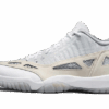 The Air Jordan 1 Retro High OG ‘Prototype’ showcases sharply contrasting color stories between the collar and the rest of the upper. The latter combines a white leather base with reinforced overlays in tan nubuck and grey and black leather. Vibrant shades of blue distinguish the collar, marked with wraparound perforated detailing that indicates where wearers will need to cut if they opt to convert the high-top silhouette into a low-top. An orange mini-Swoosh is embroidered atop the toe box, matching the woven Nike Air tag affixed to the black nylon tongue.