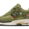 There New Balance 2002R Suede Pack Forest Green displays a upper in mesh Green turquoise, accompanied by overlays in suede Pine green. There is a branding New Balance gray as well as white midsole.